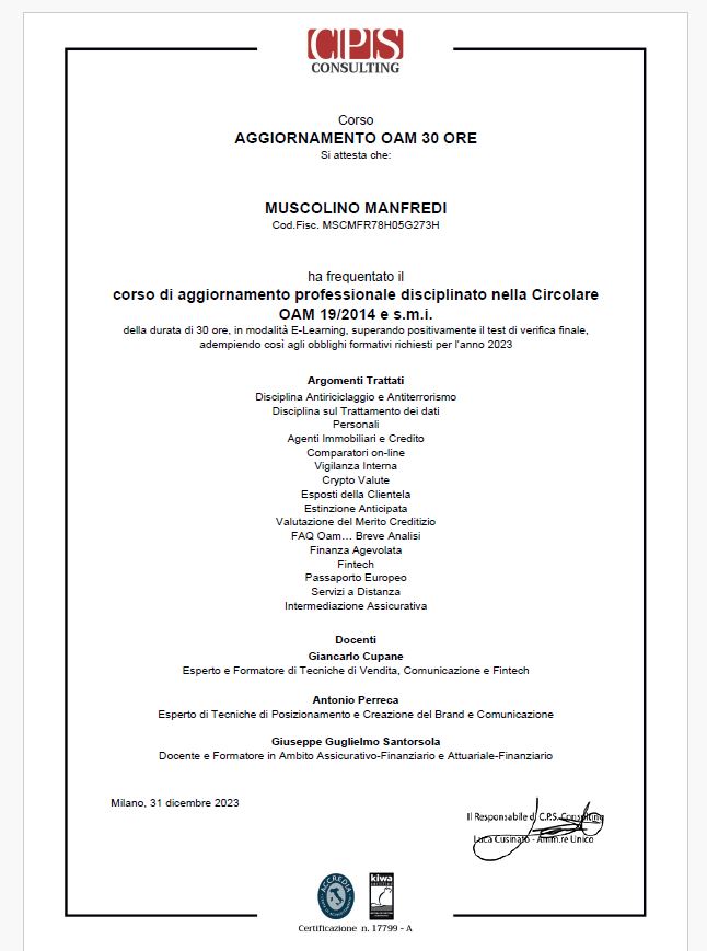 Pubblicato su Dory HoppsTrustindex verifica che la fonte originale della recensione sia Google. Felice di aver scelto l'Immobiliare Muscolino per l'alta professionalità di tutto lo staff che si è dimostrato sempre disponibile e pronto a soddisfare ogni richiesta, offrendo il proprio tempo con entusiasmo e cortesia. L'assistenza è sempre stata costante e trasparente in tutte le fasi confermando la mia fiducia per la serietà, la competenza e la capacità di fornire i giusti consigli. Consiglio vivamente l'Immobiliare Muscolino per un'esperienza di vendita o di acquisto veloce e di qualità!Pubblicato su Federico MarroneTrustindex verifica che la fonte originale della recensione sia Google. Avevo messo in vendita il mio immobile con qualche timore, temendo tempi lunghi e offerte al ribasso. Invece, grazie all’agenzia Immobiliare Muscolino, la casa è stata venduta in pochissimo tempo e – cosa per me ancora più sorprendente – a un prezzo superiore rispetto a quello che mi aspettavo! Professionalità, serietà e un’ottima strategia di vendita: ho ricevuto assistenza costante in ogni fase, dalla valutazione iniziale fino alla firma. Un servizio impeccabile. Complimenti davvero, non posso che consigliare questa agenzia a chi vuole vendere bene e senza stress.Pubblicato su salvatore giacaloneTrustindex verifica che la fonte originale della recensione sia Google. Ottima agenzia immobiliare la consiglio a chiunque sia alla ricerca di una casa . La loro competenza professionale ha fatto sì che io raggiungessi il mio obiettivo senza problemi di sorta. Grazie di cuore .Pubblicato su Giuseppe AdamoTrustindex verifica che la fonte originale della recensione sia Google. “Ho venduto la mia casa con Immobiliare Muscolino nonostante diverse difficoltà lungo il percorso. Devo dire che Manfredi è stato sempre disponibile, paziente e professionale, aiutandomi a superare ogni ostacolo. Grazie alla sua competenza e determinazione, la vendita è andata a buon fine. Consiglio questa agenzia a chi cerca un servizio serio e affidabile!”Pubblicato su Francesco SiragusaTrustindex verifica che la fonte originale della recensione sia Google. molto cordiale e disponibilePubblicato su Giovanni MargiottaTrustindex verifica che la fonte originale della recensione sia Google. Nell' acquisto della nostra casa ci siamo rivolti all immobiliare Manfredi Muscolino e siamo stati soddisfatti in tutto una persona molto professionale e soprattutto seria...cosa che oggi come oggi non si riesce più a trovare in giro! Lo consiglio molto a chi è in cerca di una casa da acquistare o a chi deve vendere...Pubblicato su Francesca GentileTrustindex verifica che la fonte originale della recensione sia Google. Agenzia affidabile con professionisti seri, affidabili sempre cortesi e disponibili. Esperienza personale più che positivaPubblicato su Lucia BarberaTrustindex verifica che la fonte originale della recensione sia Google. Devo dire grazie a questa agenzia immobiliare ,che mi ha trovato casa e ha curato il tutto con massima professionalità e cortesia. Sita nel in Mazara del Vallo ,splendido paese nel Trapanese ricca di arte cultura e buona cucina.Verificato da TrustindexIl badge verificato di Trustindex è il Simbolo Universale di Fiducia. Solo le migliori aziende possono ottenere il badge verificato con un punteggio di recensione superiore a 4.5, basato sulle recensioni dei clienti degli ultimi 12 mesi. Per saperne di più